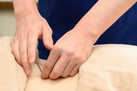 顔の鍼を打ち終わった後、皮膚・肌・筋肉に関係する腕や足の経穴(ツボ)へ鍼灸を施します。
