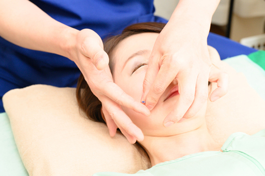 髪の毛ほど細い鍼で顔の筋肉やツボに刺激を与え、血流・リンパの流れを促進。
