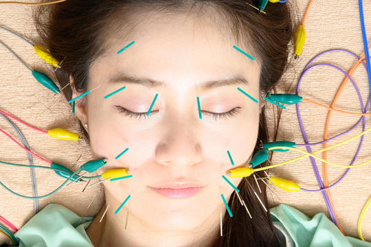 その後、ほうれい線などお顔のお悩みに応じた鍼を施した後、低周波電気を流します。(低周波電気の苦手な方には使用しません)